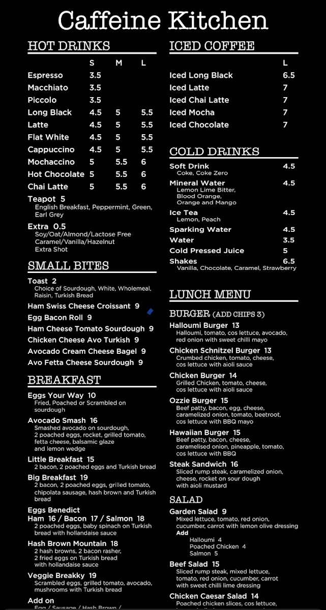Caffeine Kitchen Menu